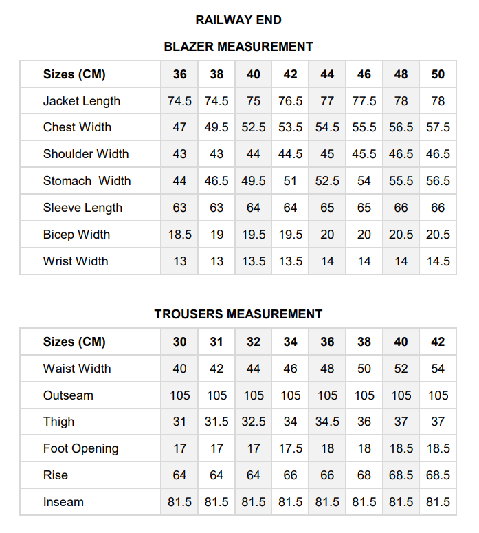 Please note, sizes may vary slightly depending on the material and stretch however with many items additional material is left in the waistband of the trousers which allows for expansion or reduction.