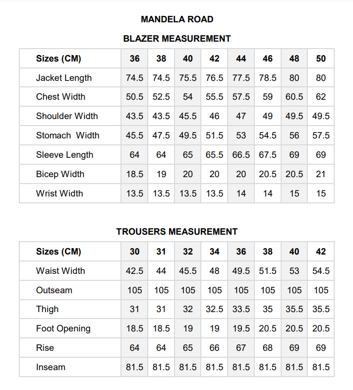 Please note, sizes may vary slightly depending on the material and stretch however with many items additional material is left in the waistband of the trousers which allows for expansion or reduction.