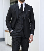 SLIM FIT BLACK MEN’S THREE PIECE SUIT WITH PEAK LAPELS