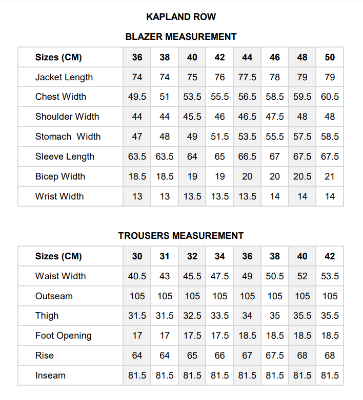 Please note, sizes may vary slightly depending on the material and stretch however with many items additional material is left in the waistband of the trousers which allows for expansion or reduction.