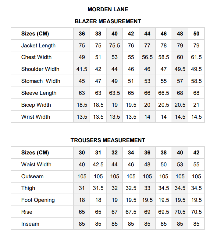 Please note, sizes may vary slightly depending on the material and stretch however with many items additional material is left in the waistband of the trousers which allows for expansion or reduction.
