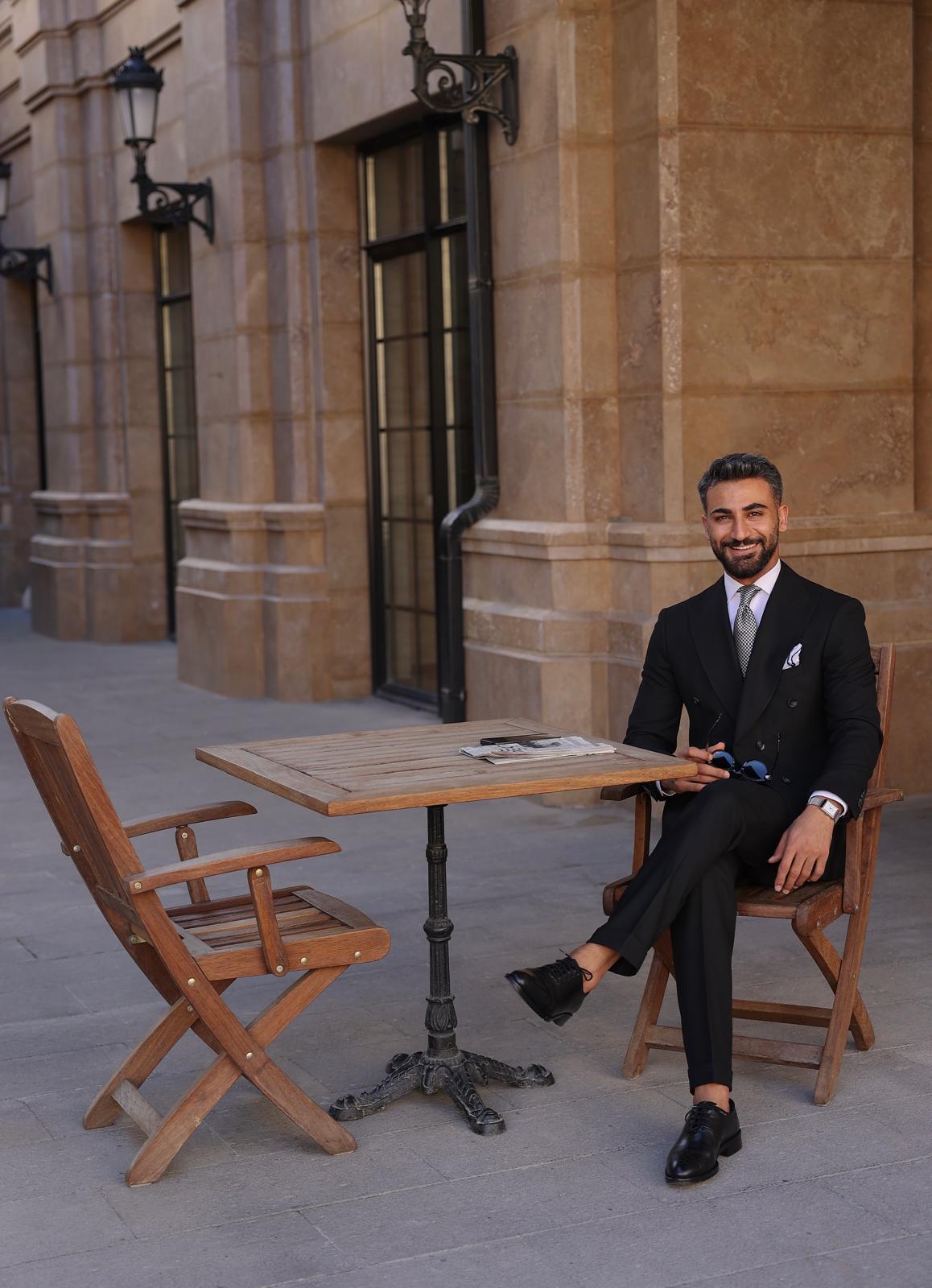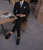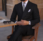 TAILORED SLIM FIT black DOUBLE BREASTED MEN’S SUIT WITH PEAK LAPELS