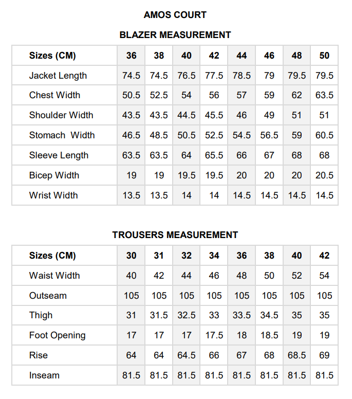 Please note, sizes may vary slightly depending on the material and stretch however with many items additional material is left in the waistband of the trousers which allows for expansion or reduction.