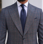 Slim fit dark navy blue mixed two piece men’s suit with peak lapels