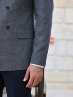 A blue and grey checked double breasted blazer with plain blue trousers is a stylish and sophisticated outfit that is perfect for a variety of occasions. The dark navy colour is a deep, muted shade that is both classic and contemporary, and pairs well with a variety of other colours.