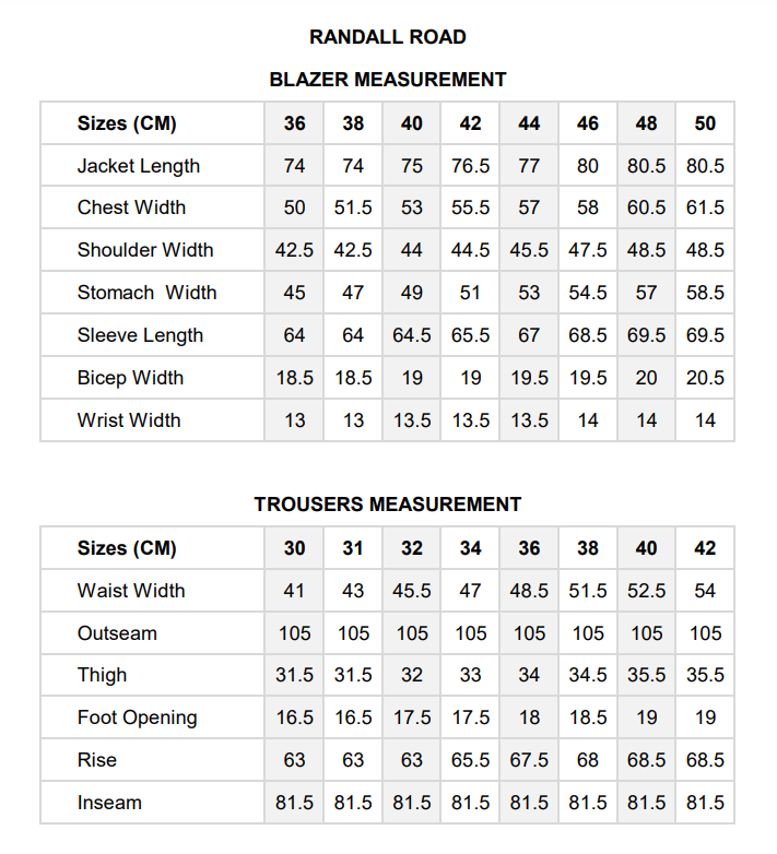 Please note, sizes may vary slightly depending on the material and stretch however with many items additional material is left in the waistband of the trousers which allows for expansion or reduction.