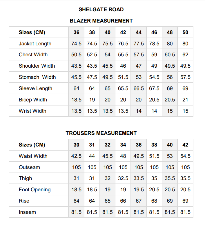 Please note, sizes may vary slightly depending on the material and stretch however with many items additional material is left in the waistband of the trousers which allows for expansion or reduction.