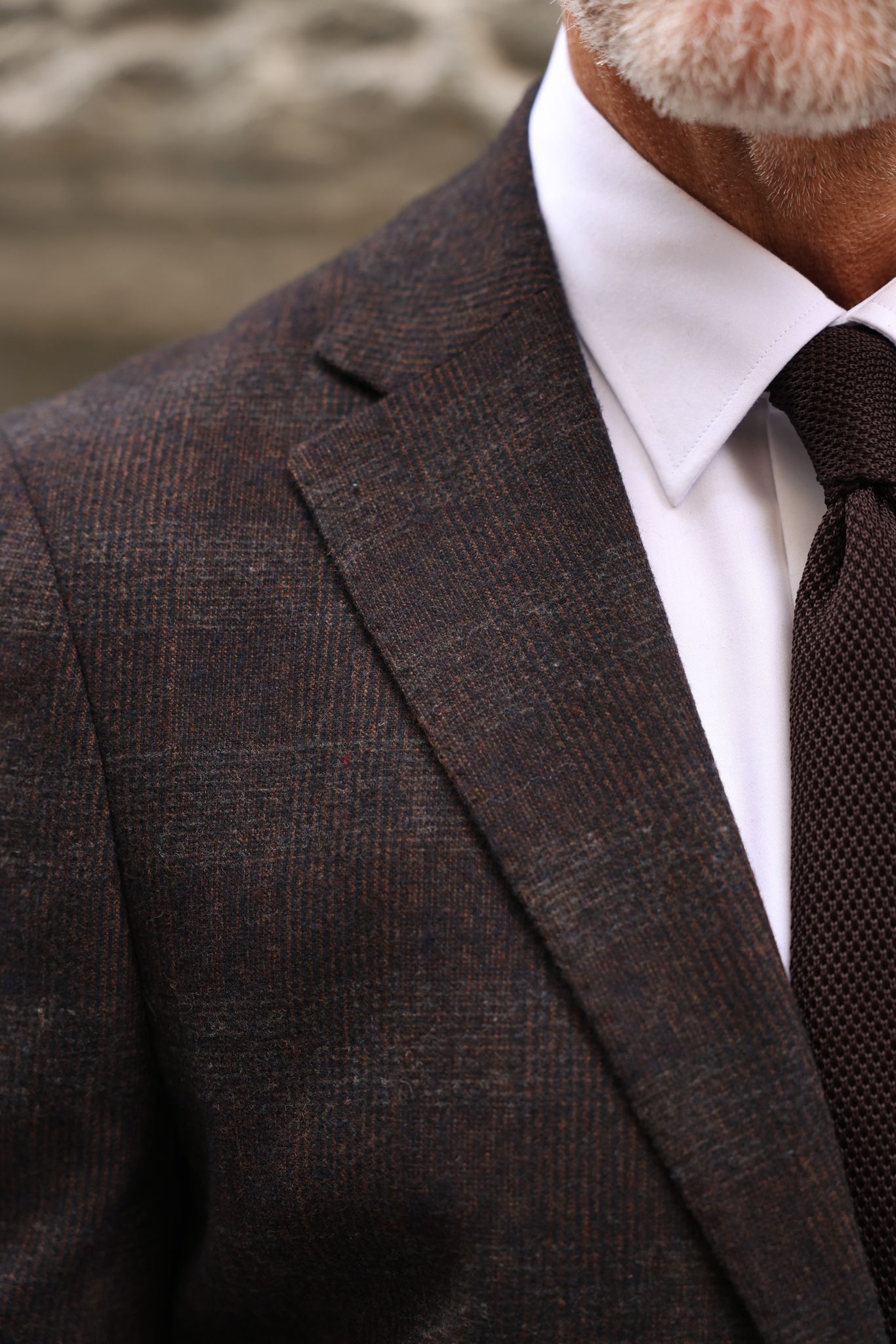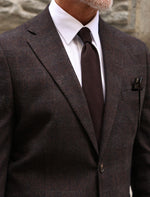 Slim fit brown and grey chequered mixed two piece men’s suit with notch lapels