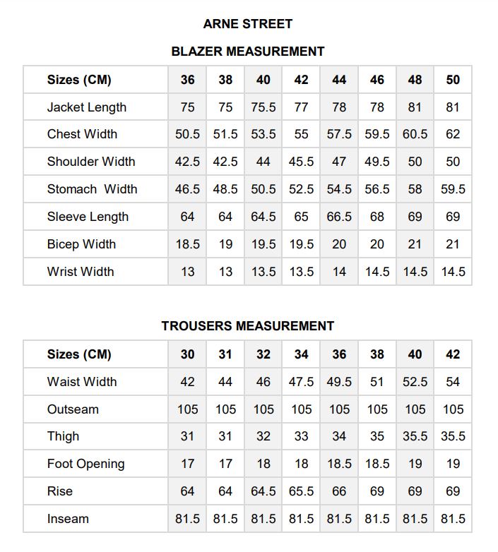 Please note, sizes may vary slightly depending on the material and stretch however with many items additional material is left in the waistband of the trousers which allows for expansion or reduction.