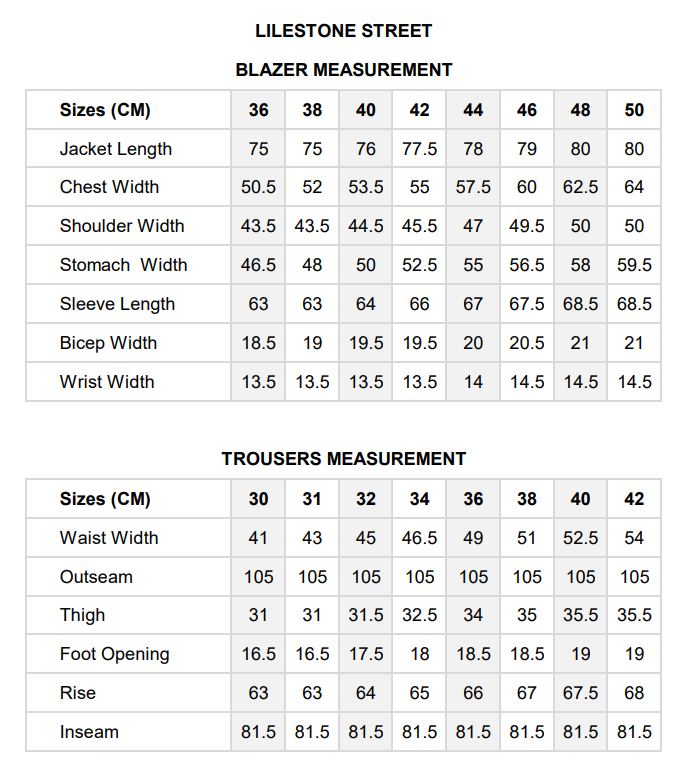 Please note, sizes may vary slightly depending on the material and stretch however with many items additional material is left in the waistband of the trousers which allows for expansion or reduction.