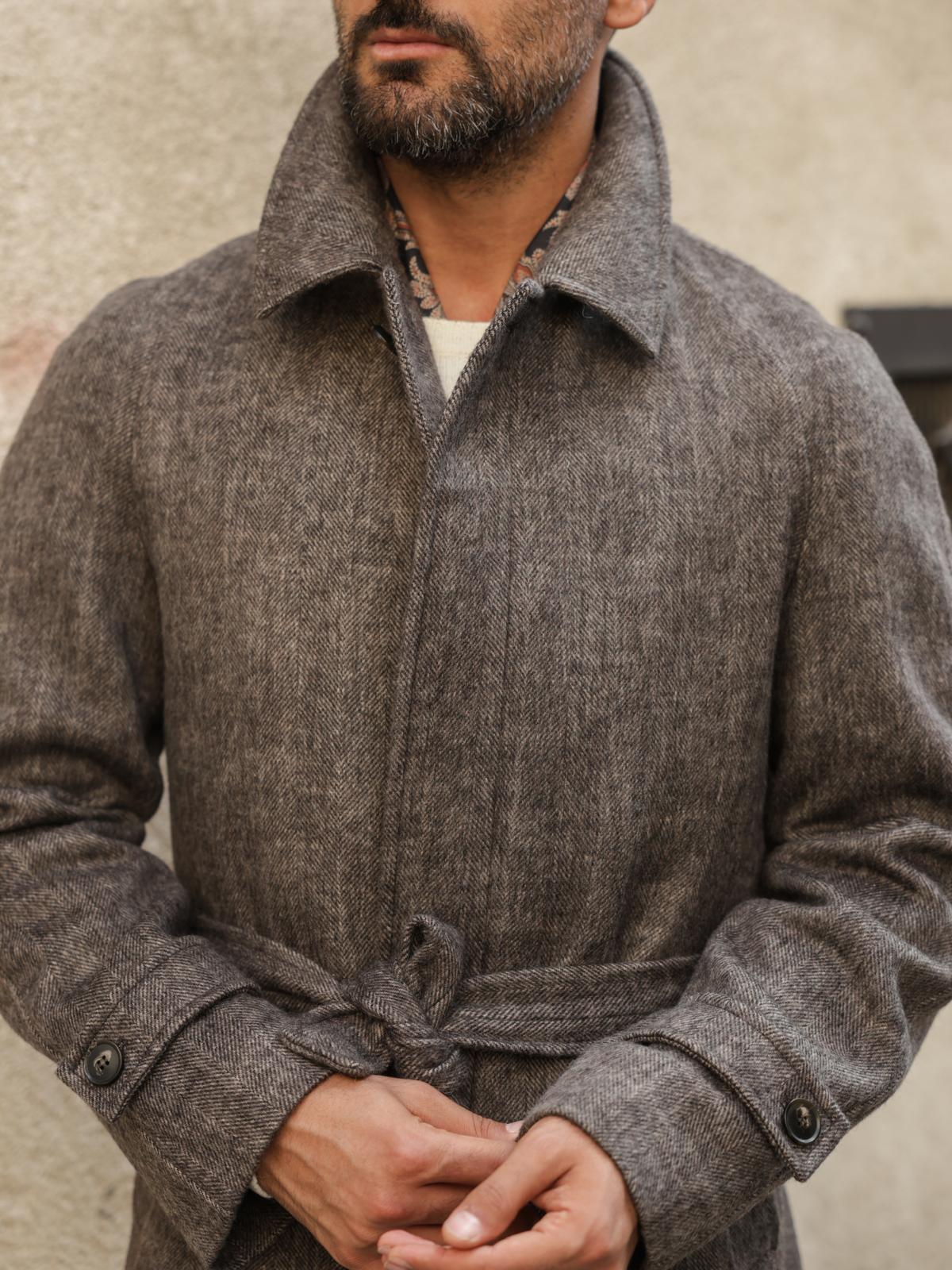 Crafted from pure wool, this coat combines warmth, durability, and refined style. The natural fibers provide superior insulation while remaining breathable, ensuring comfort in both crisp autumn air and the depths of winter. Its tailored silhouette creates a sharp, masculine profile, complemented by a structured collar and clean lines that elevate any outfit—from business attire to weekend layering. Designed with practicality in mind, it features a smooth lining for easy wear and a versatile length that balances coverage with elegance. A true investment piece.