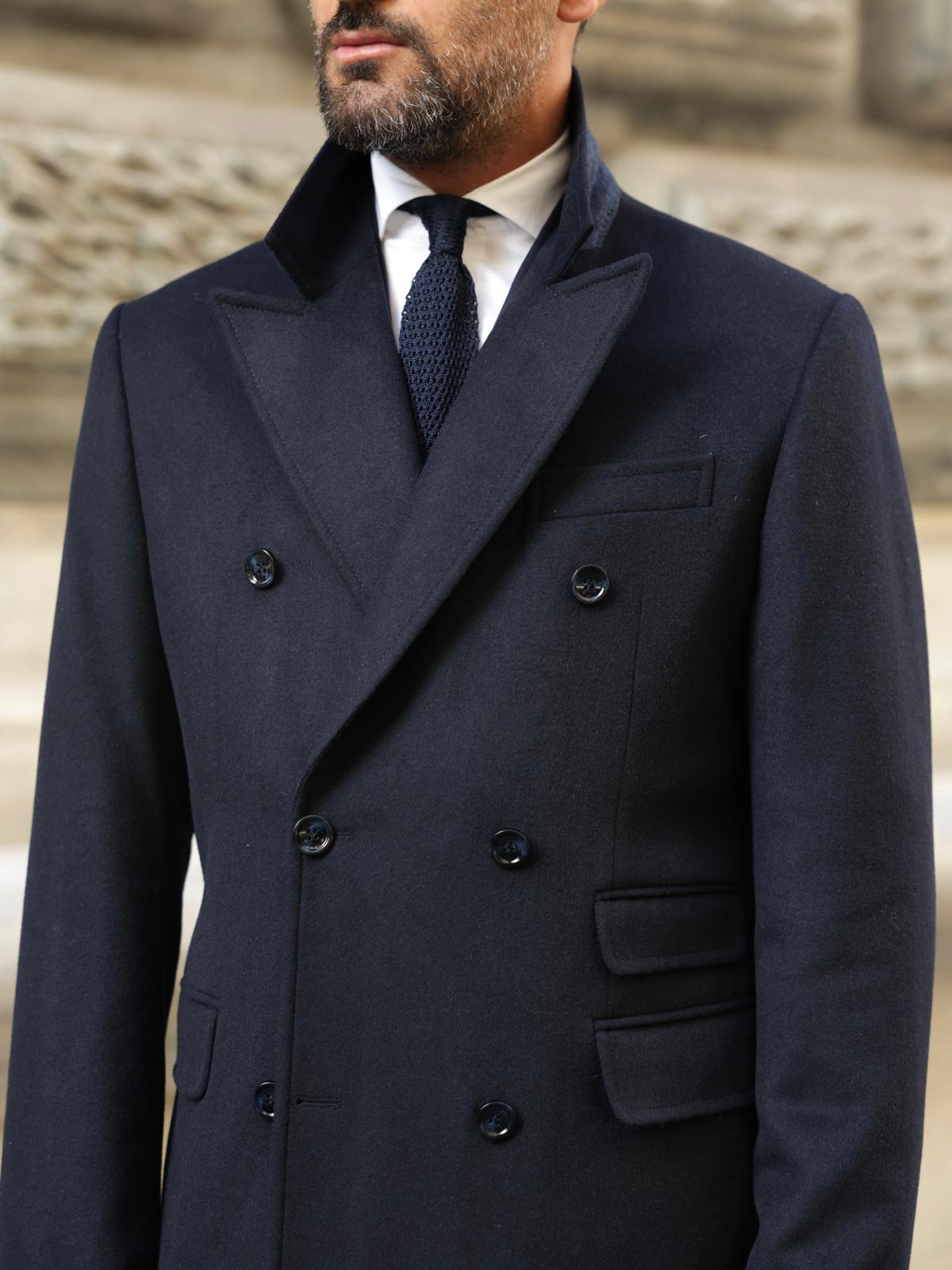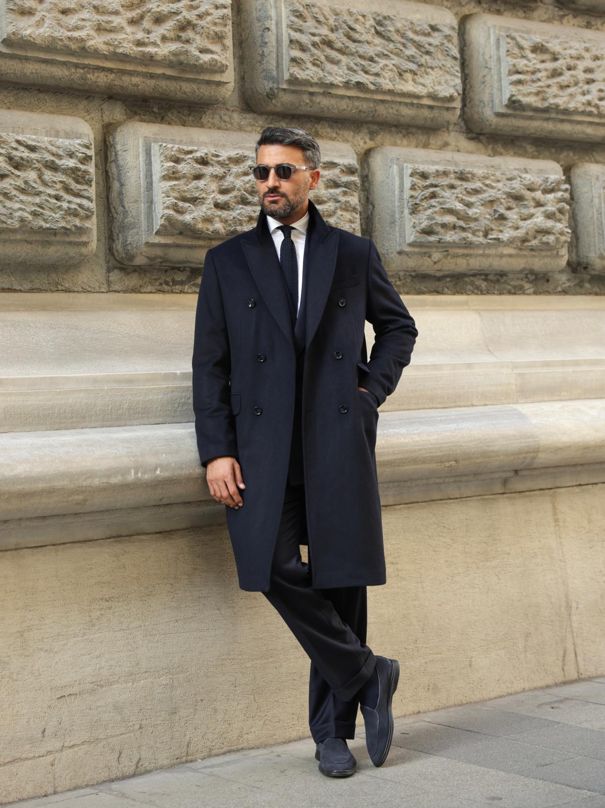 Sophisticated and commanding, this double-breasted coat is crafted from pure wool for unmatched warmth, structure, and longevity. The rich wool fabric drapes with natural elegance, while the classic double-breasted front with wide collar creates a bold, confident silhouette. Designed for both formal and smart-casual wear, it transitions seamlessly from city commutes to evening occasions. A smooth interior lining, and precise tailoring ensure comfort without compromising on style. A timeless outerwear staple, this wool coat delivers the perfect balance of heritage charm and modern refinement.