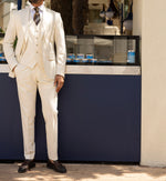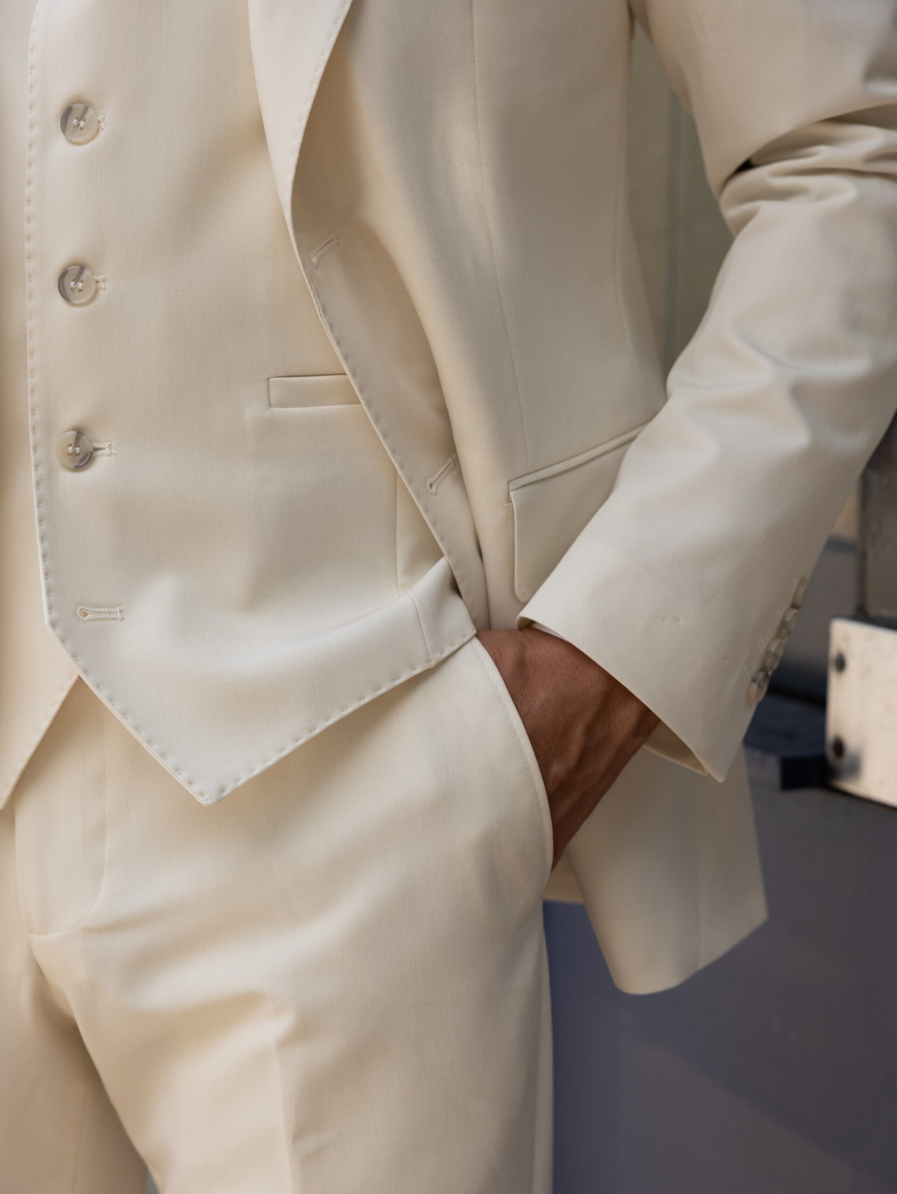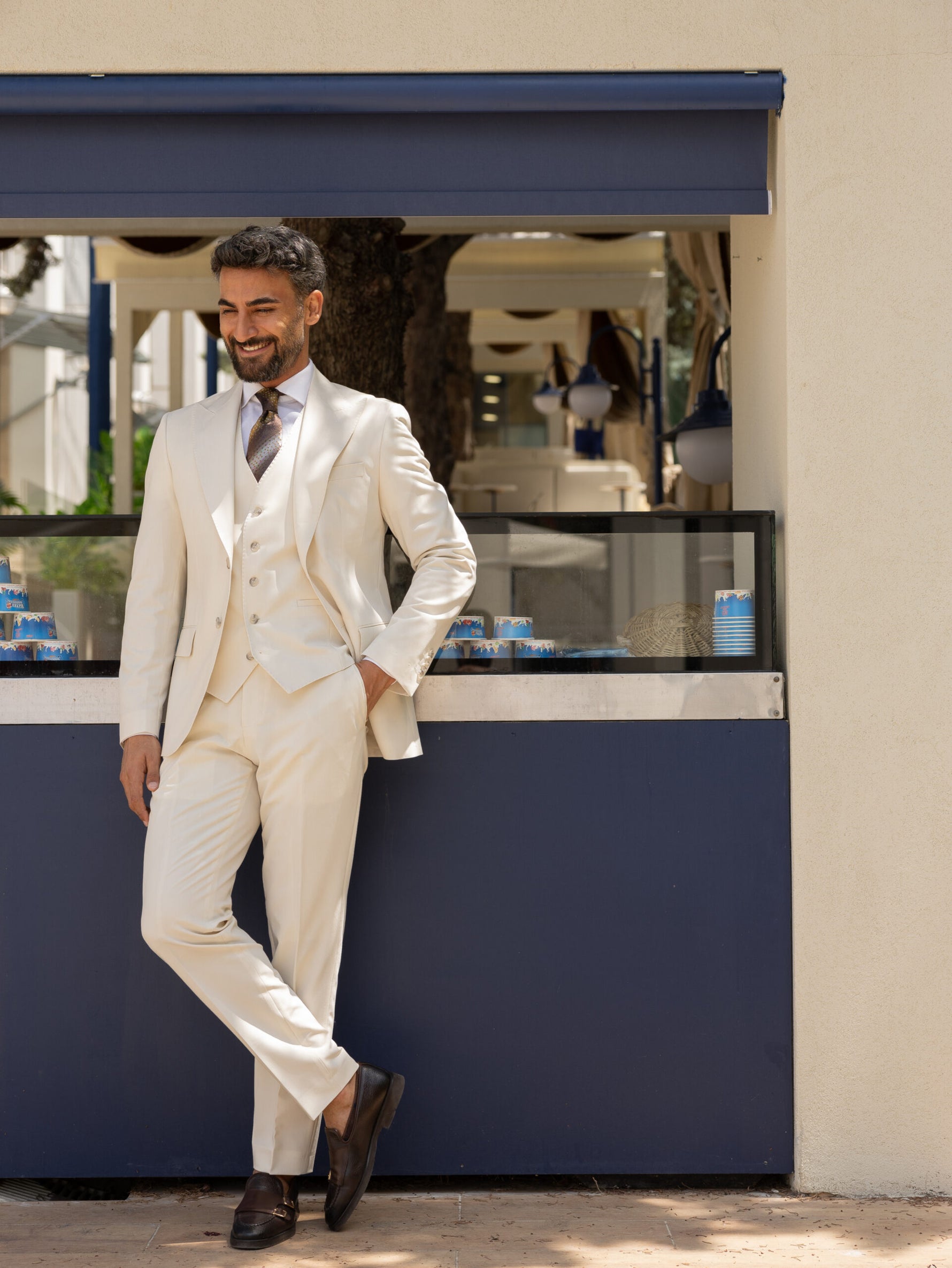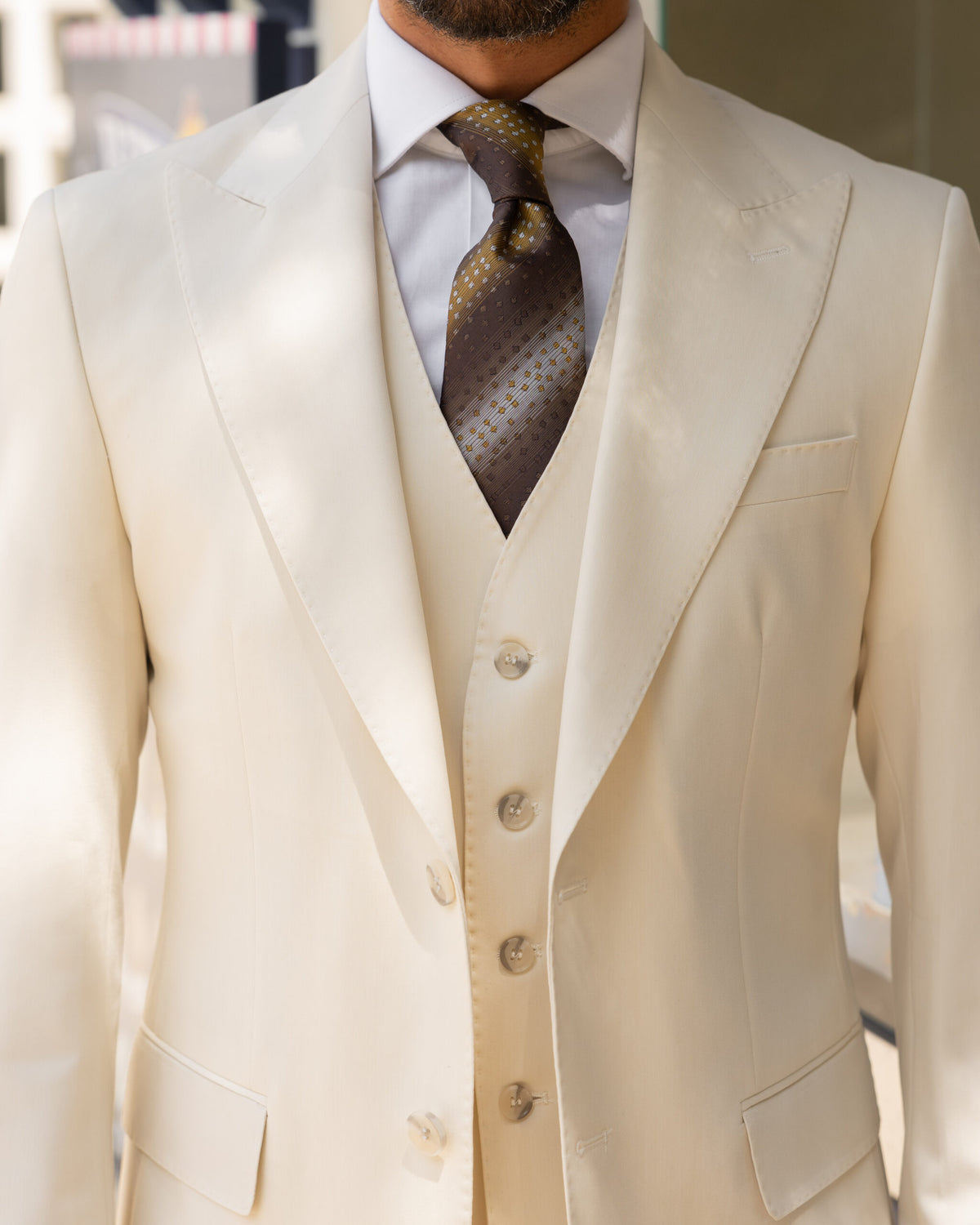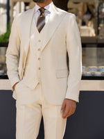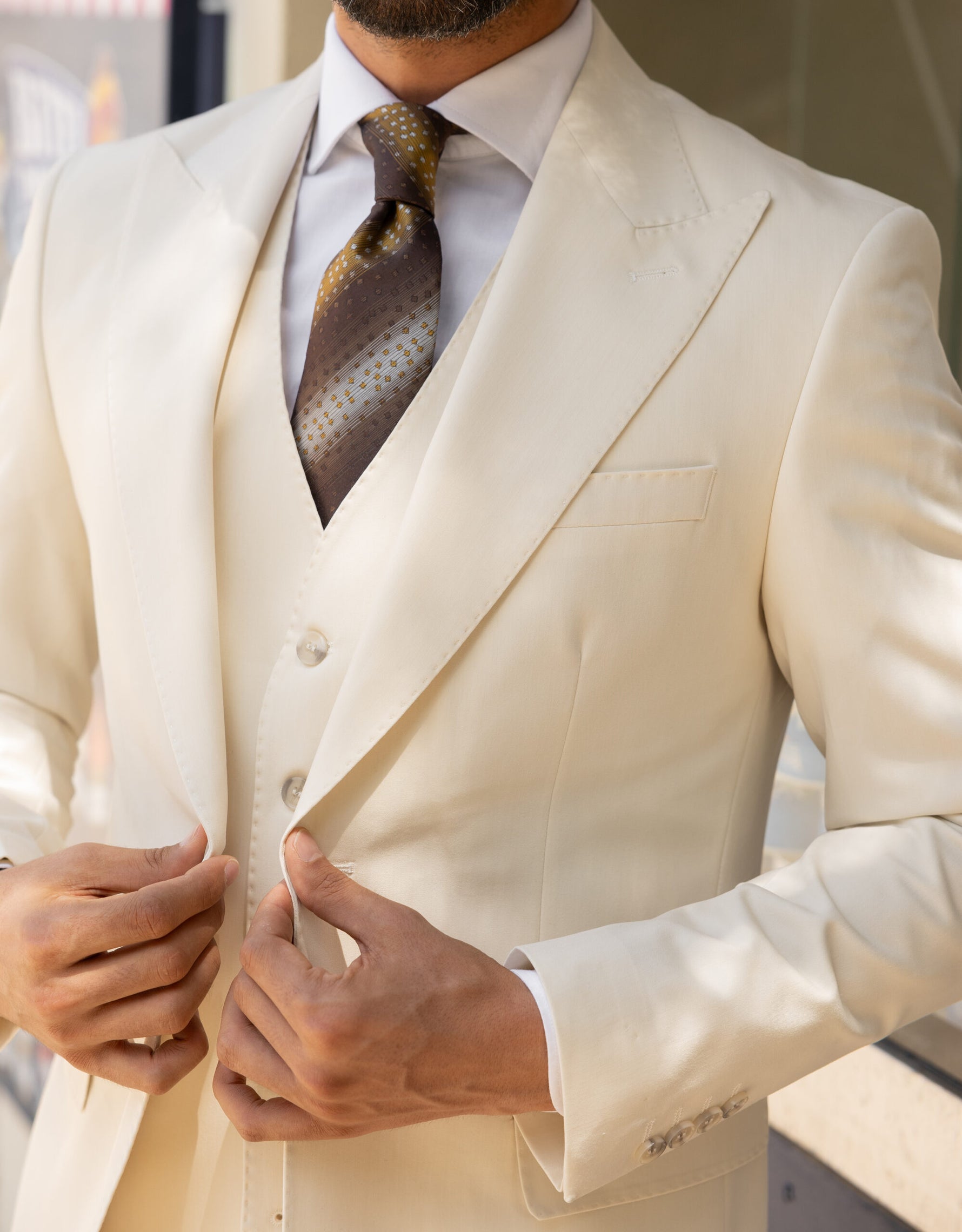 SLIM FIT CREAM MEN’S THREE PIECE SUIT WITH PEAK LAPELS