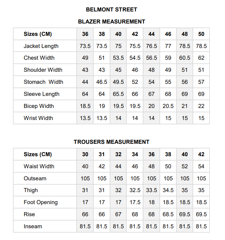 Please note, sizes may vary slightly depending on the material and stretch however with many items additional material is left in the waistband of the trousers which allows for expansion or reduction