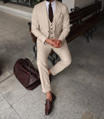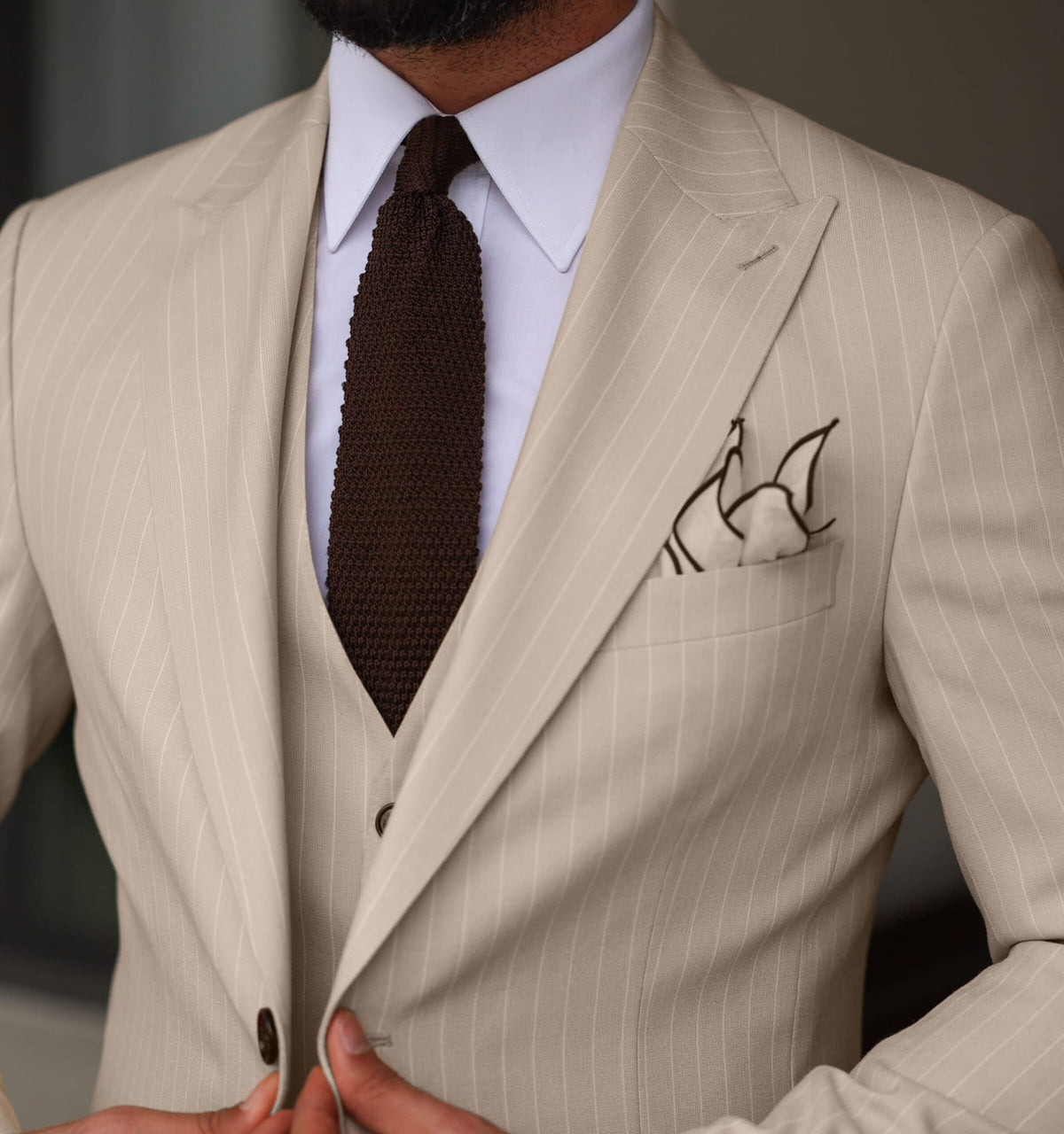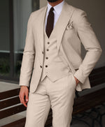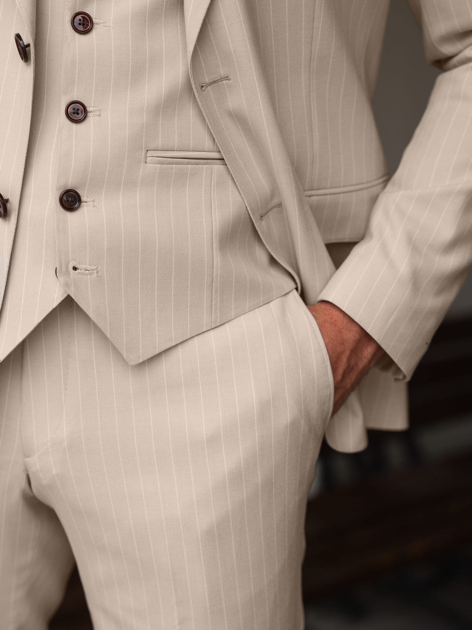 Batten Street- Beige Pinstripe Three-Piece Suit