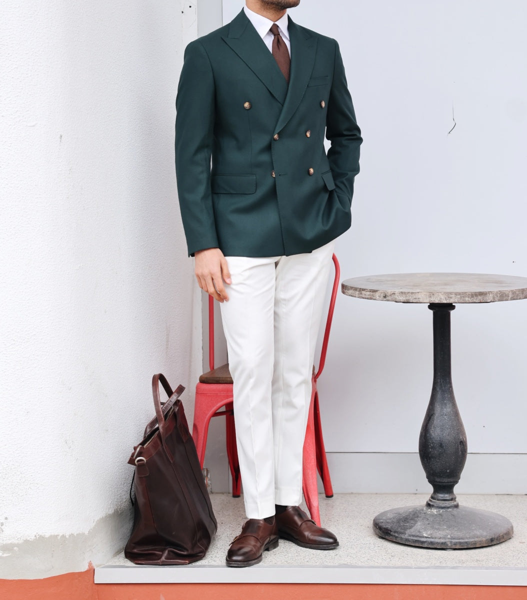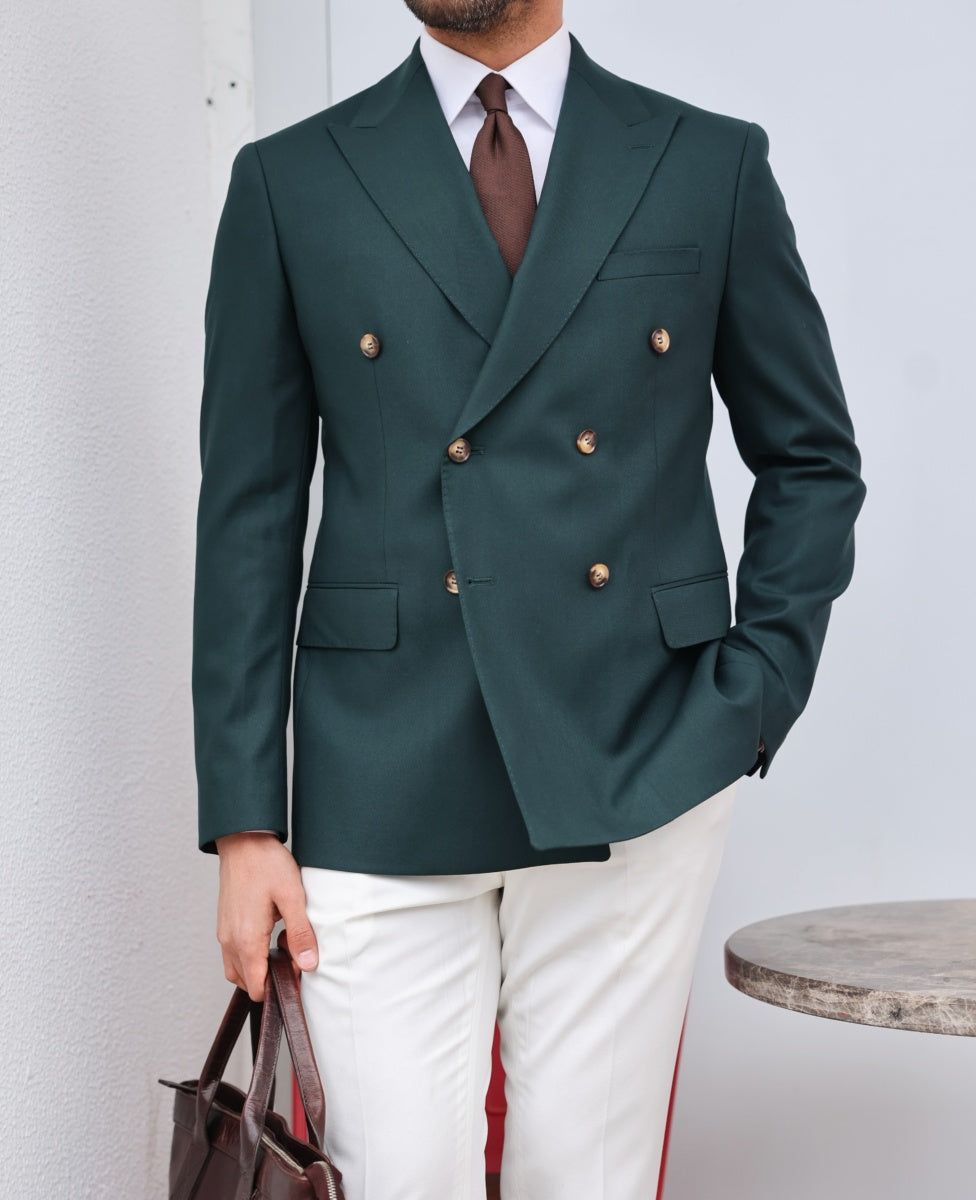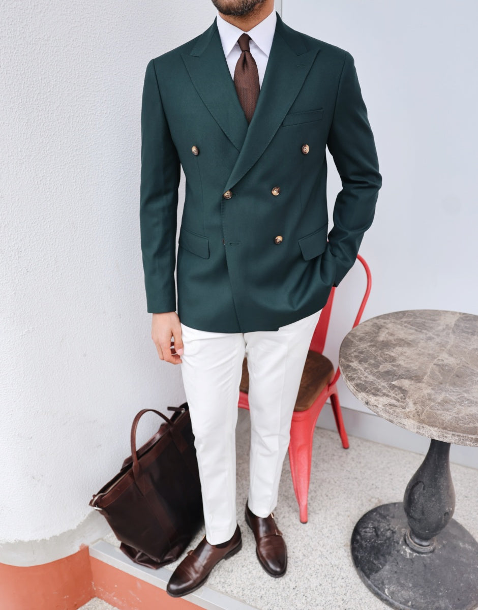 TAILORED SLIM FIT DOUBLE BREASTED PINE GREEN AND WHITE MIX COMBINED MEN’S SUIT