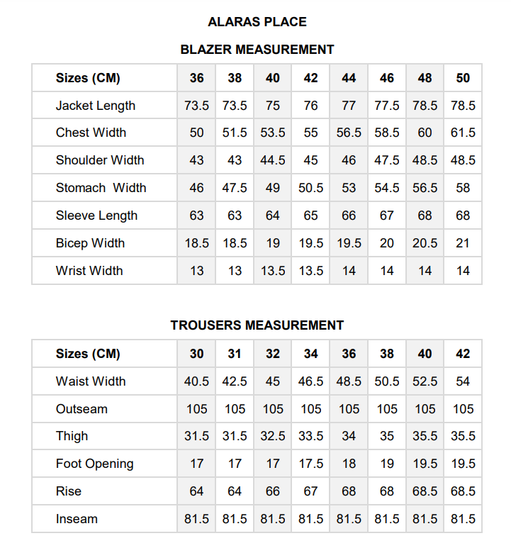 Please note, sizes may vary slightly depending on the material and stretch however with many items additional material is left in the waistband of the trousers which allows for expansion or reduction.