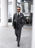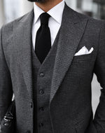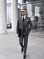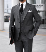 SLIM FIT GREY CHECKED MEN’S THREE PIECE SUIT WITH PEAK LAPELS