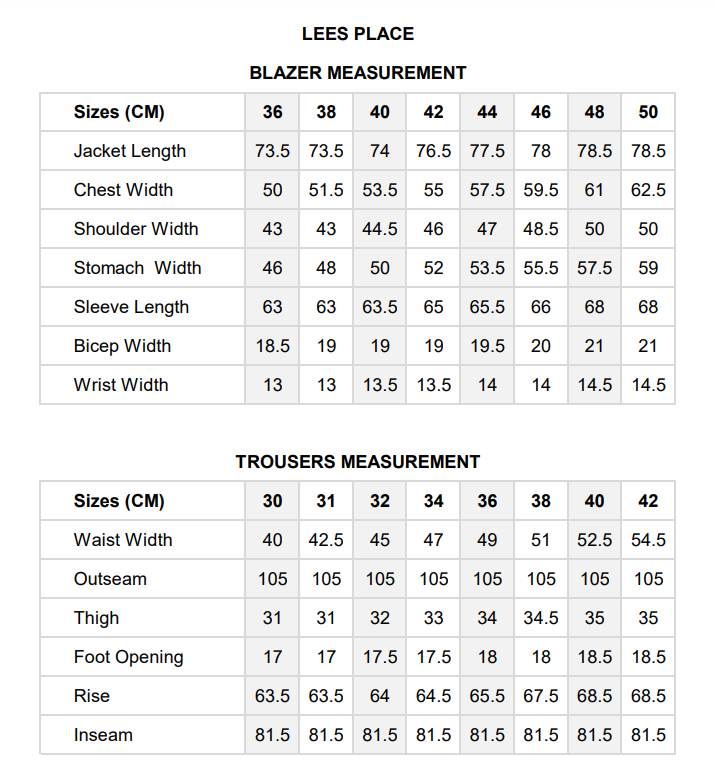 Please note, sizes may vary slightly depending on the material and stretch however with many items additional material is left in the waistband of the trousers which allows for expansion or reduction.