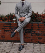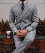 SLIM FIT GREY DOUBLE BREASTED TWO PIECE MEN’S SUIT WITH PEAK LAPELS