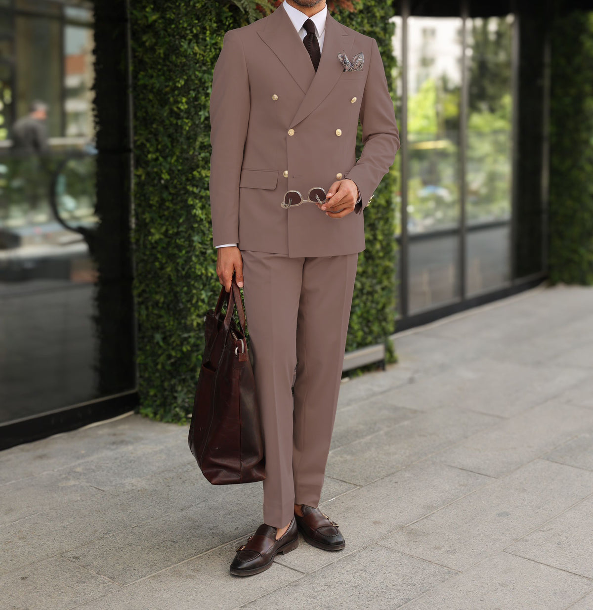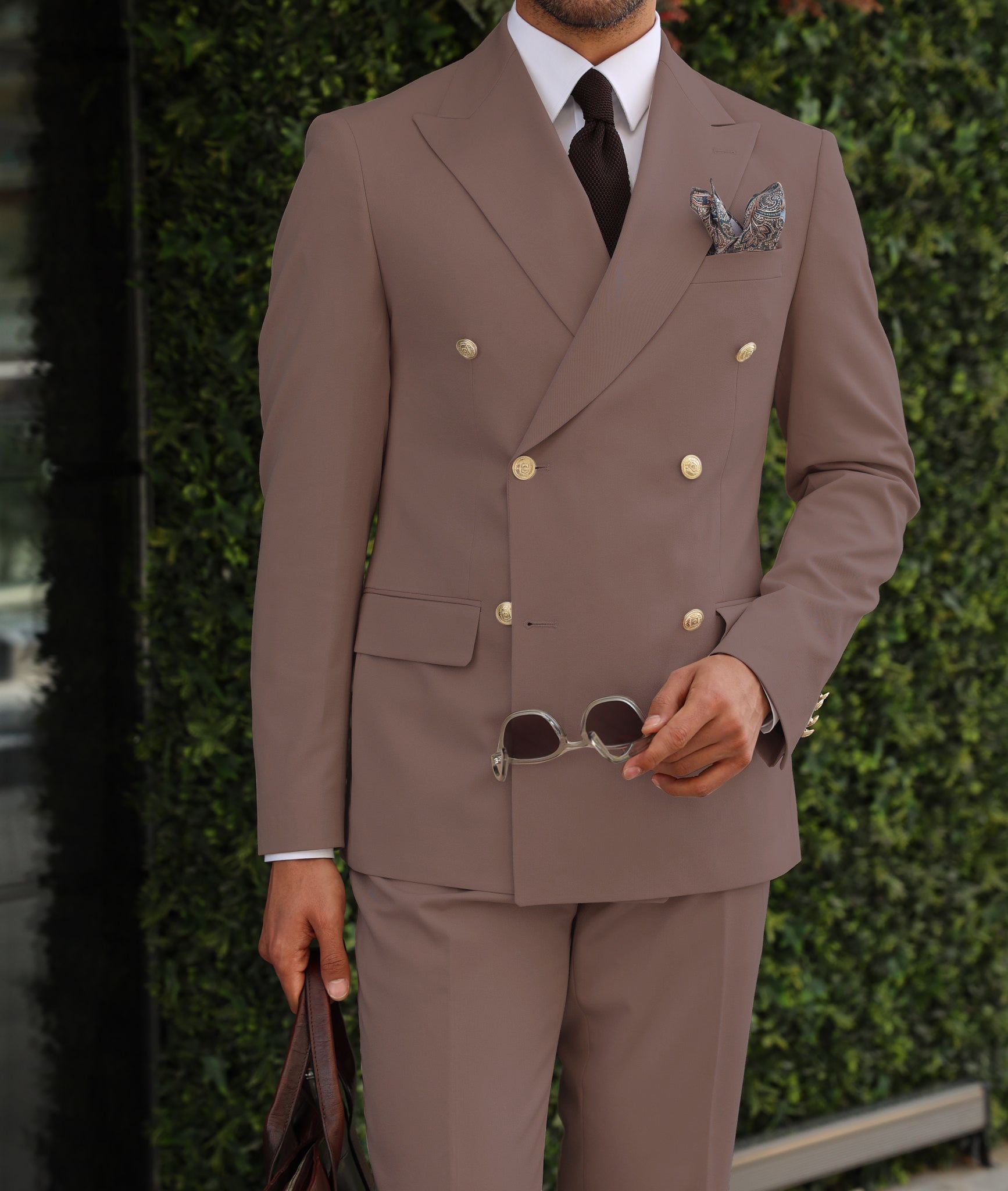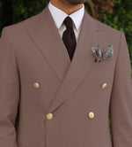 Tailored slim fit cream double breasted men’s suit WITH PEAK LAPEL DECORATIVE GOLD BUTTONS