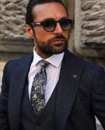 Refined and distinctive, this navy and ivory floral tie offers a sophisticated alternative to classic paisley. The deep navy base is decorated with an intricate ivory floral motif, creating a soft contrast that feels timeless yet fresh.