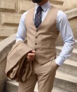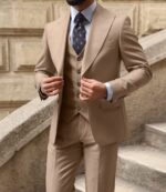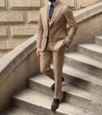 The slim fit cream three-piece suit with peak lapels is a sophisticated and elegant ensemble that is perfect for any formal occasion. The cream colour adds a touch of classic refinement, while the slim fit cut of the suit creates a modern and sleek silhouette. The peak lapels add a timeless touch of sophistication, making the suit suitable for any formal event. The suit includes a jacket, waistcoat, and trousers, all designed to provide both style and comfort. The trousers feature a flat front and two side pockets, adding a practical touch to the ensemble. This versatile and high-quality suit is perfect for anyone who wants to make a stylish statement at any formal event, whether it be a wedding, business meeting or any other special occasion. Please note, sizes may vary slightly depending on the material and stretch however with many items additional material is left in the waistband of the trousers which allows for expansion or reduction