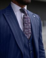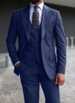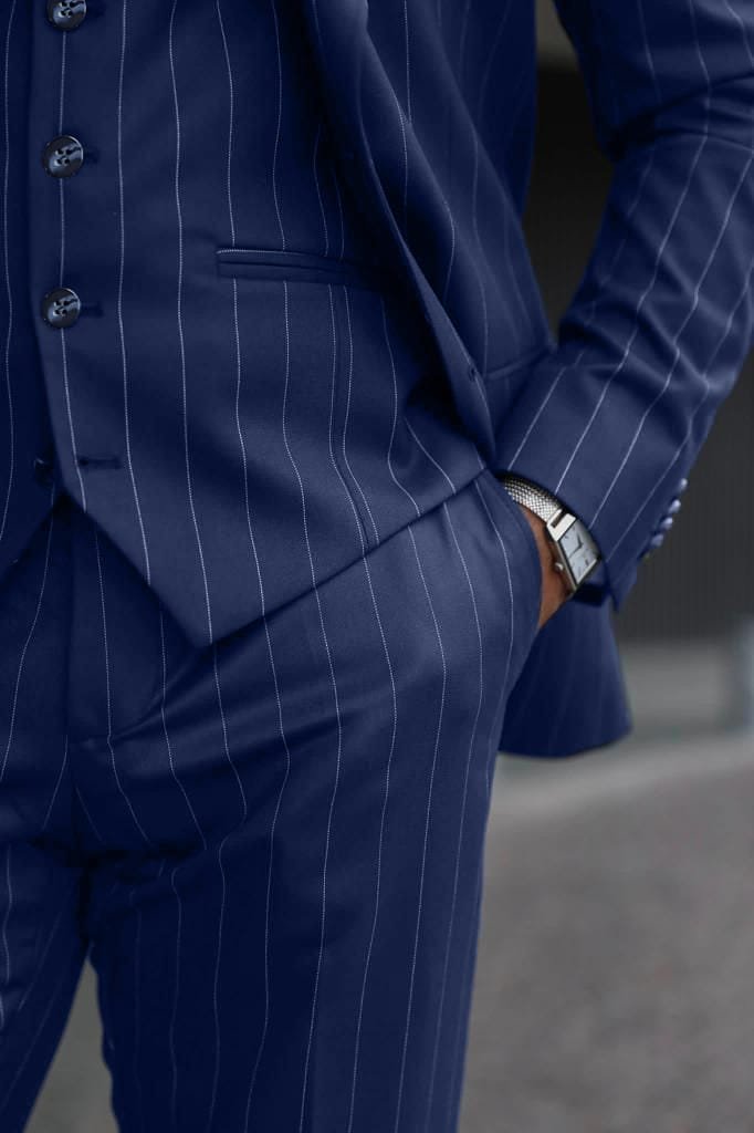 Our slim fit suits are our closest-fitting style, precisely cut for a snug fit through shoulders, chest, arms and thighs. The blazer is fitted through the waist while trousers are neat through the seat and taper towards the ankle to skim top of the shoe.