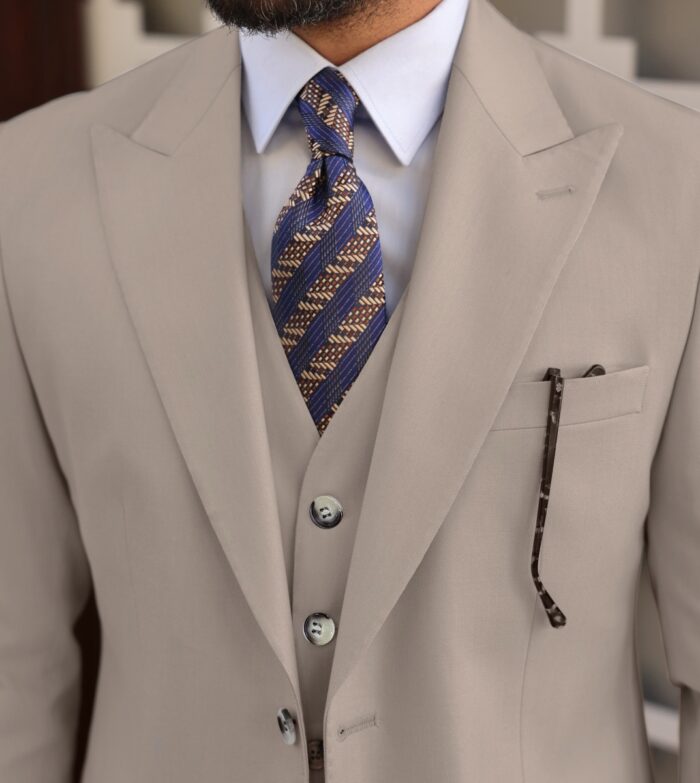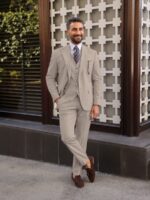 Our slim fit suits are our closest-fitting style, precisely cut for a snug fit through shoulders, chest, arms and thighs. The blazer is fitted through the waist while trousers are neat through the seat and taper towards the ankle to skim top of the shoe.