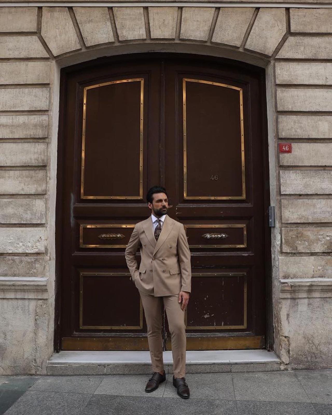 Our slim fit suits are our closest-fitting style, precisely cut for a snug fit through shoulders, chest, arms and thighs. The blazer is fitted through the waist while trousers are neat through the seat and taper towards the ankle to skim top of the shoe.