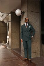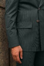 Our slim fit suits are our closest-fitting style, precisely cut for a snug fit through shoulders, chest, arms and thighs. The blazer is fitted through the waist while trousers are neat through the seat and taper towards the ankle to skim top of the shoe.
