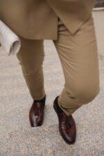 Our slim fit suits are our closest-fitting style, precisely cut for a snug fit through shoulders, chest, arms and thighs. The blazer is fitted through the waist while trousers are neat through the seat and taper towards the ankle to skim top of the shoe.