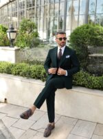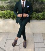 Our slim fit suits are our closest-fitting style, precisely cut for a snug fit through shoulders, chest, arms and thighs. The blazer is fitted through the waist while trousers are neat through the seat and taper towards the ankle to skim top of the shoe.