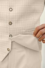 Our slim fit suits are our closest-fitting style, precisely cut for a snug fit through shoulders, chest, arms and thighs. The blazer is fitted through the waist while trousers are neat through the seat and taper towards the ankle to skim top of the shoe.
