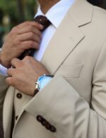 Our slim fit suits are our closest-fitting style, precisely cut for a snug fit through shoulders, chest, arms and thighs. The blazer is fitted through the waist while trousers are neat through the seat and taper towards the ankle to skim top of the shoe.