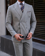 SLIM FIT GREY DOUBLE BREASTED TWO PIECE MEN’S SUIT WITH PEAK LAPELS