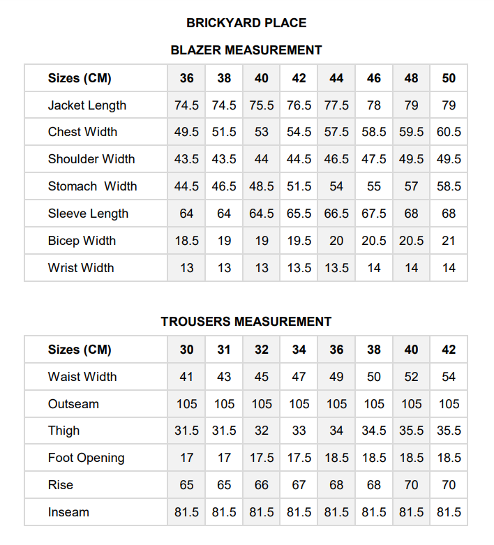 Please note, sizes may vary slightly depending on the material and stretch however with many items additional material is left in the waistband of the trousers which allows for expansion or reduction