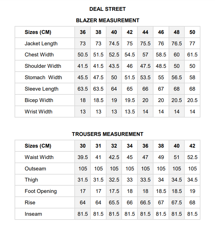 Please note, sizes may vary slightly depending on the material and stretch however with many items additional material is left in the waistband of the trousers which allows for expansion or reduction.