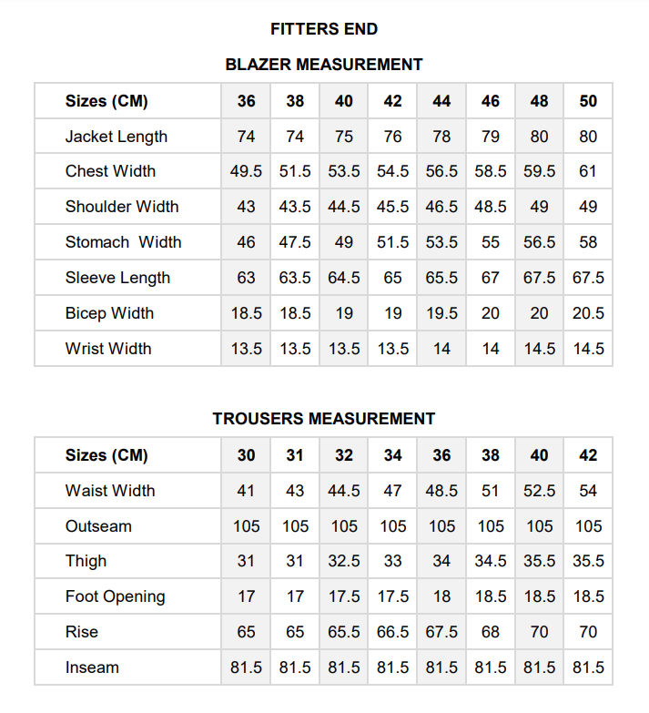 Please note, sizes may vary slightly depending on the material and stretch however with many items additional material is left in the waistband of the trousers which allows for expansion or reduction.