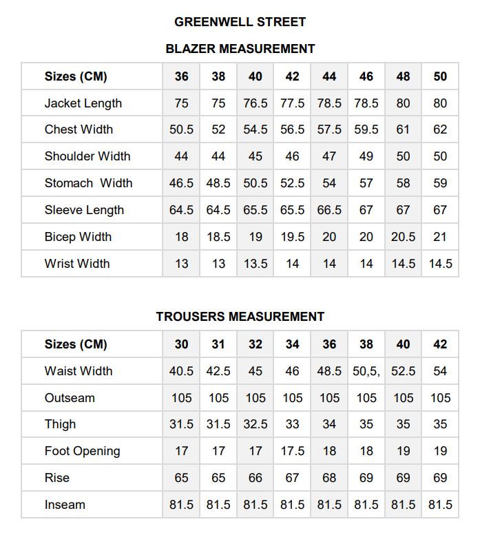 Please note, sizes may vary slightly depending on the material and stretch however with many items additional material is left in the waistband of the trousers which allows for expansion or reduction.