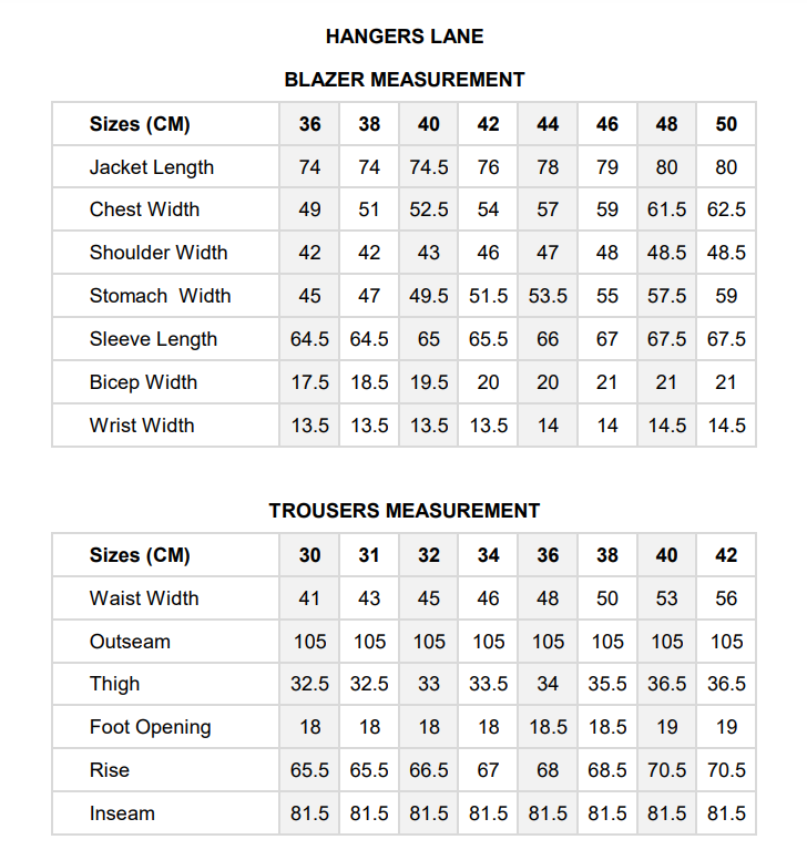 Please note, sizes may vary slightly depending on the material and stretch however with many items additional material is left in the waistband of the trousers which allows for expansion or reduction.