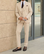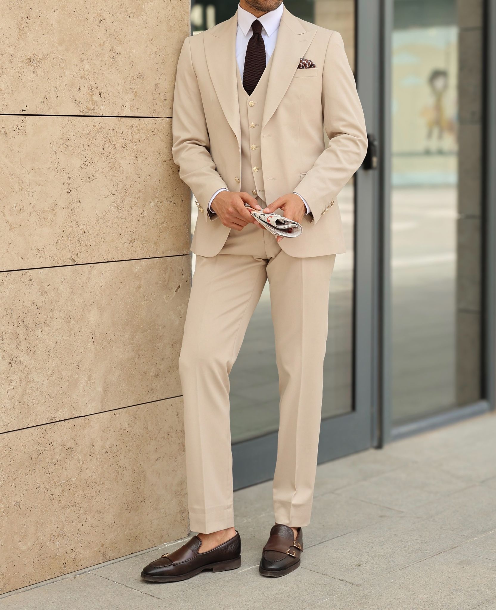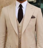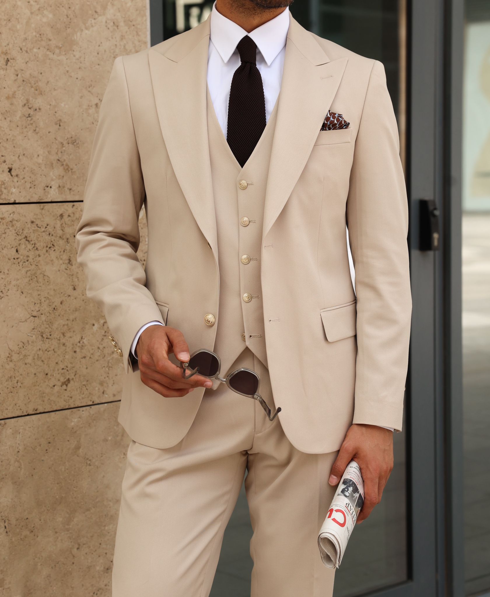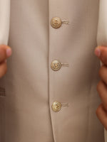 SLIM FIT CREAM MEN’S THREE PIECE SUIT WITH DECORATIVE GOLD BUTTONS