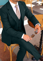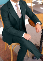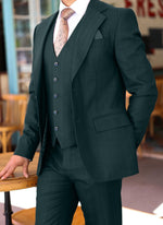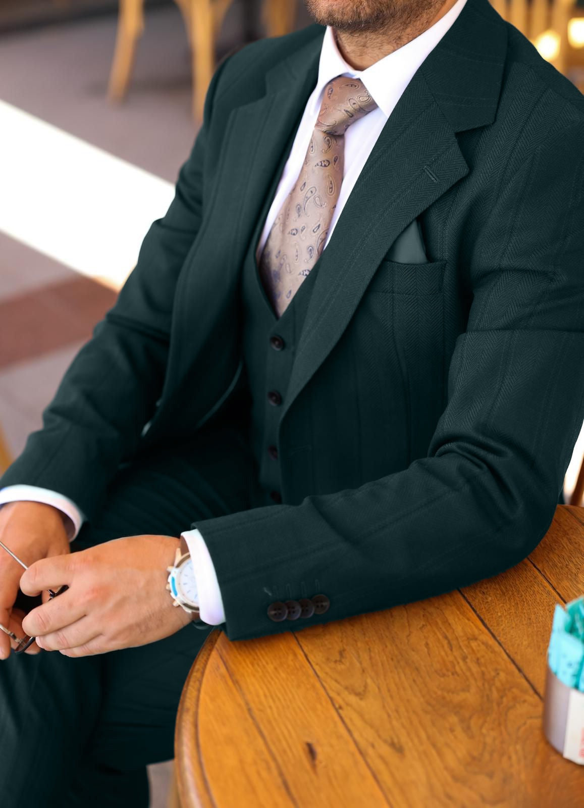 Slim fit herringbone green pinstripe men’s three piece suit with notch lapels