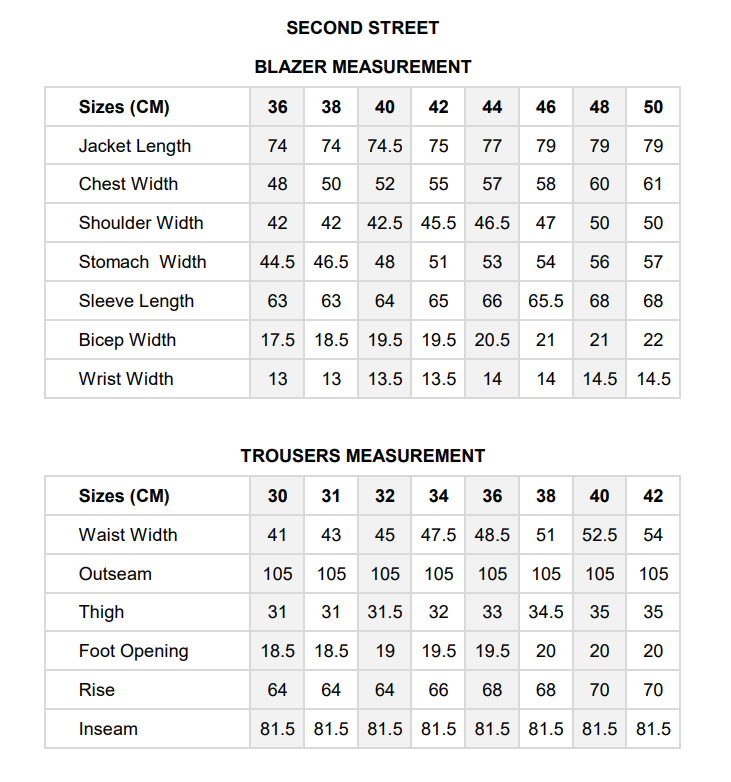 Please note, sizes may vary slightly depending on the material and stretch however with many items additional material is left in the waistband of the trousers which allows for expansion or reduction.