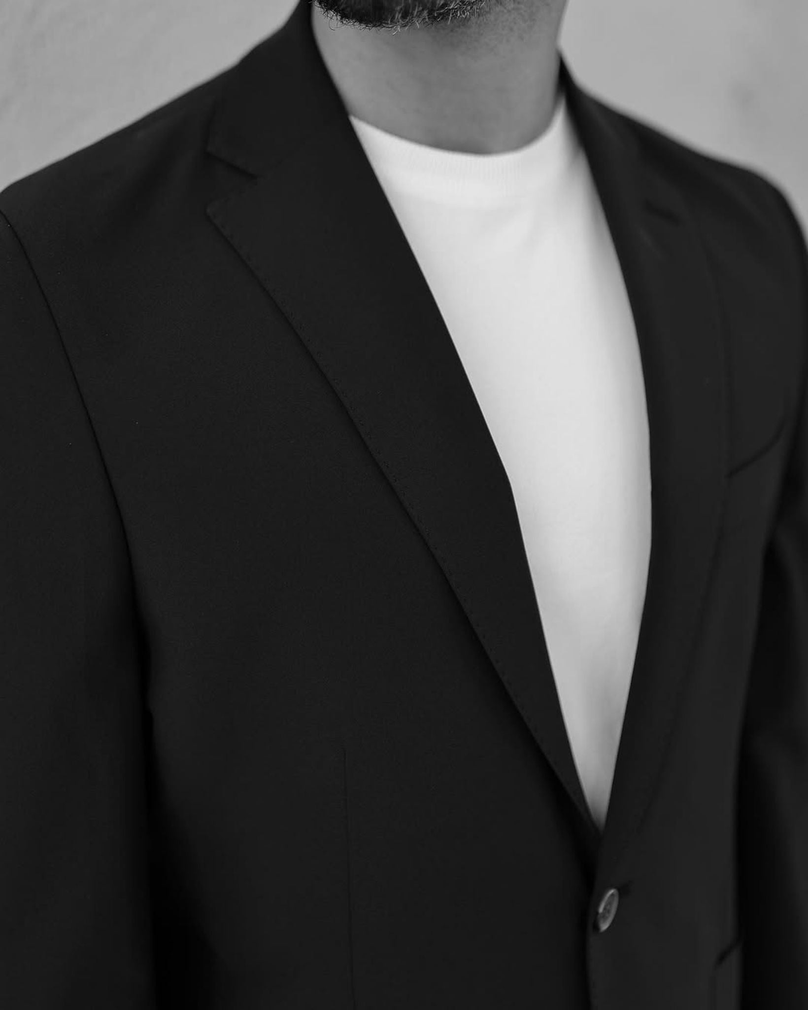 Tailored slim fit black men’s two piece suit with notch lapels