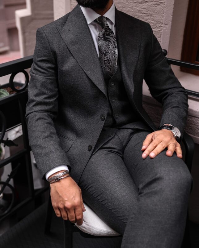 ...clean and polished look that complements the light grey color of the suit, while the tie will add a touch of contrast and sophistication. Brown leather dress shoes would be...