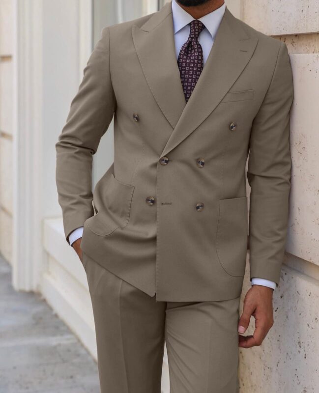 ...crisp white shirt and a patterned tie in a complementary color, such as navy or burgundy. A pair of cream dress shoes would also be a suitable choice for this...
