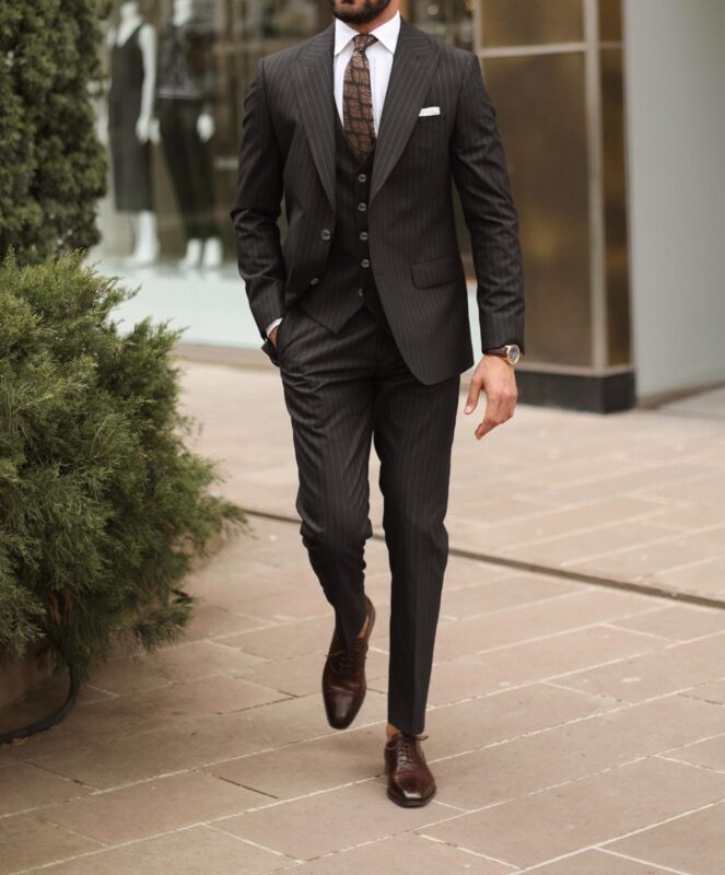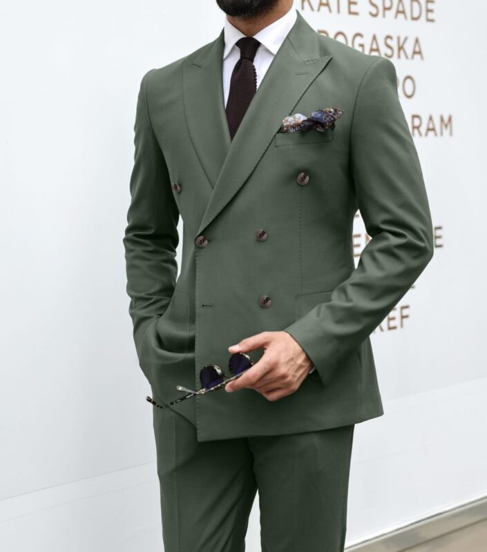 ...unique and eye-catching touch, while the double-breasted design and peak lapels add a touch of classic elegance. Pair it with a crisp white dress shirt, a patterned tie, and black...